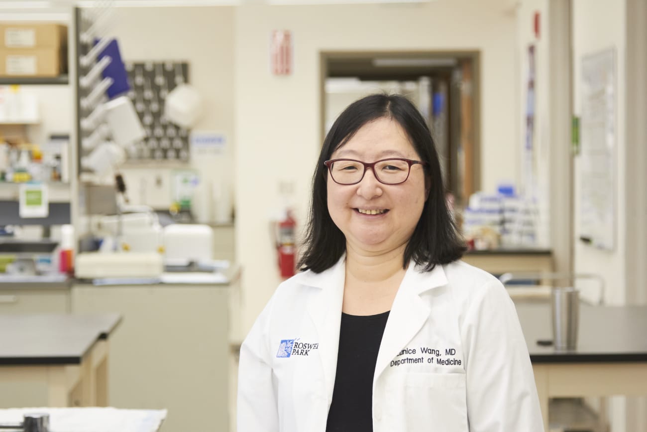 “We are one of few centers participating in this trial, which hopes to address an unmet need in our elderly patients,” says Eunice Wang, MD, Chief of the Leukemia/Benign Hematology Service and Leukemia Clinical Disease Team Leader at Roswell Park. Dr. Wang serves as site principal investigator for “A Phase 1/2, Multicenter, Open-Label, Randomized Dose-Ranging and -Expansion Study of the Combination of Gilteritinib, Venetoclax and Azacitidine in Patients with Newly Diagnosed FLT3 Mutated Acute Myeloid Leukemia (AML) Not Eligible for Intensive Induction Chemotherapy” (NTC05520567), which aims to enroll 70 patients.